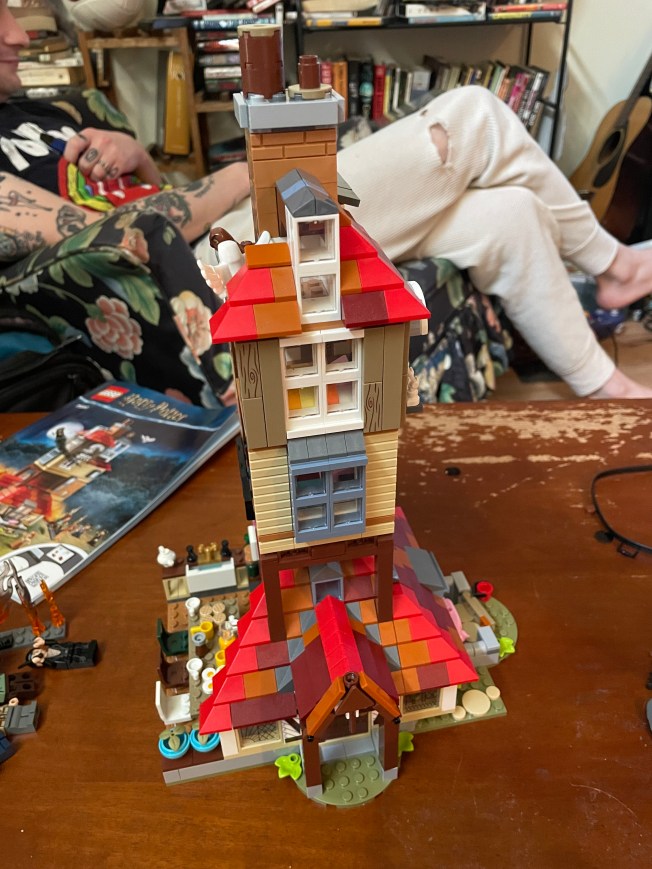 Hi! During the last LEGO haul that Johnny and I had, he surprised me with an additional set for our two year anniversary. To continue on with our Harry Potter collection, he got me the Attack On The Burrow set which is one that I have had my eye on for a while. This build took us about five hours to complete and we just finished it this past weekend – it turned out great and had all of the quirky touches that you would expect in the Weasley home. Check it out: