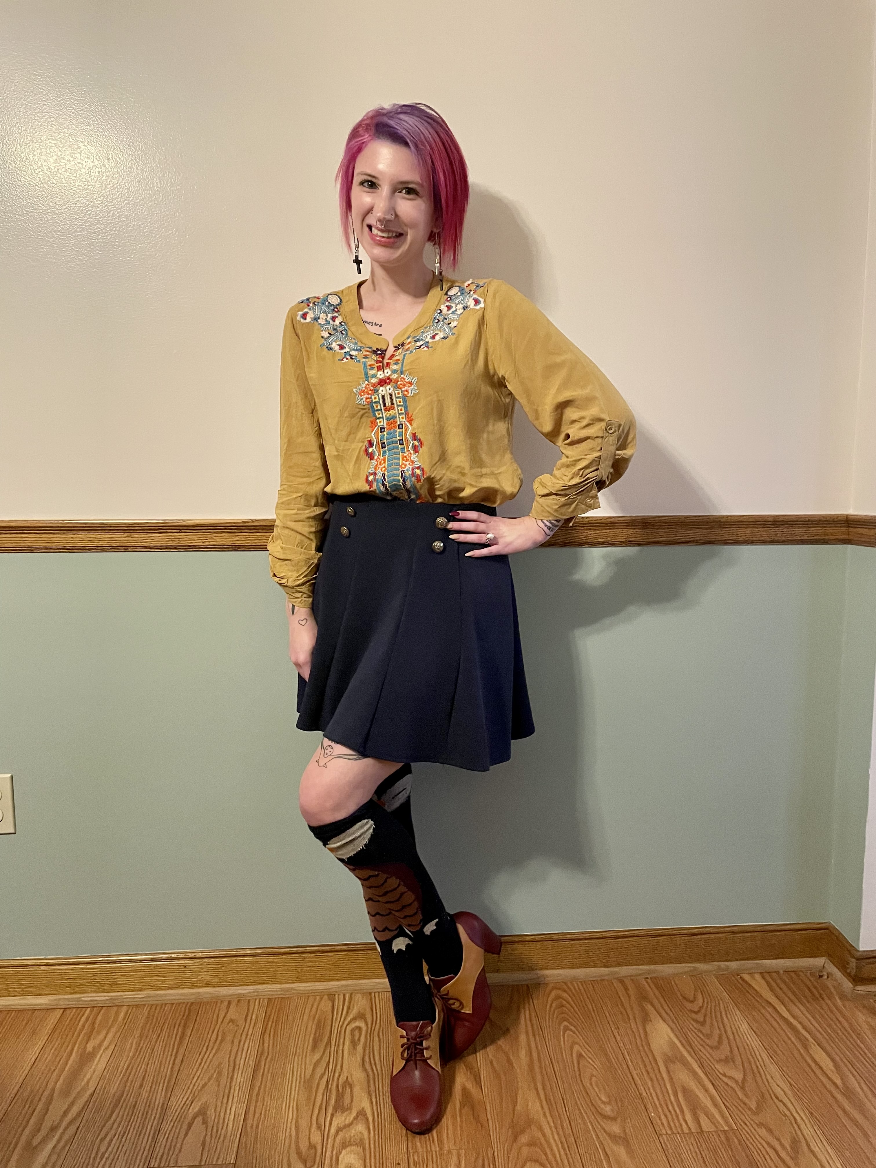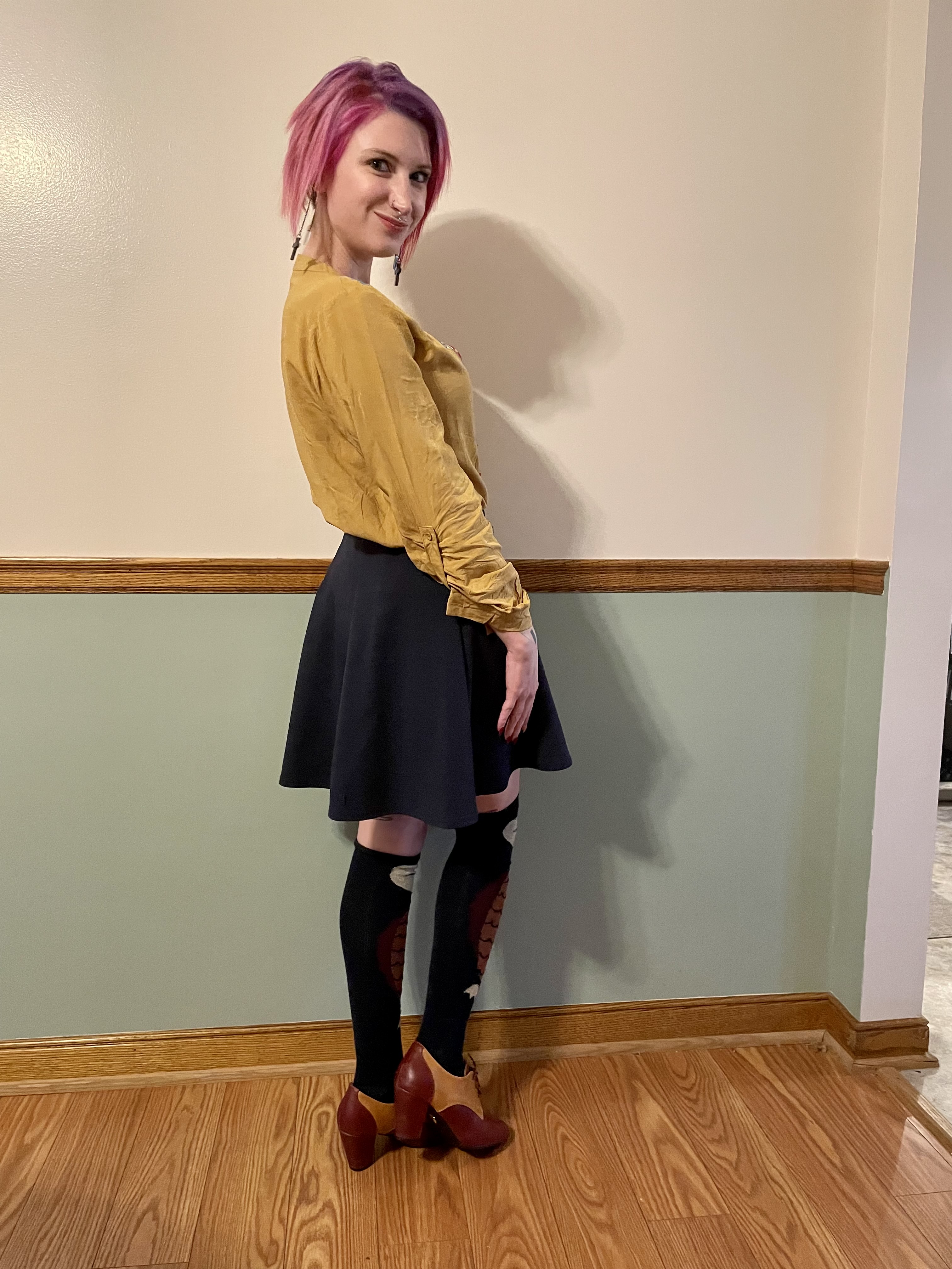 Hello everyone and welcome to my Thanksgiving OOTD from my family celebration! Before we begin, if it looks like I am sweaty in these pictures, it’s because I was lol. I had literally JUST gotten done cooking five or so minutes prior to taking them and let’s just say it was really steamy in the kitchen!! The sweater I was wearing probably didn’t help matters, but all was well once the house started cooling down. 🙂 Check it out: